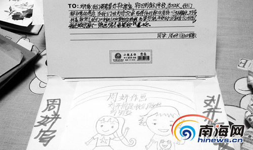 面对同学们、老师们的关爱,24日,小锦写了一封回信。信中说,“你们好,我在广州过得很好,请你们放心。非常感谢你们送我的贺卡,看了你们给我的来信,我特别开心。”