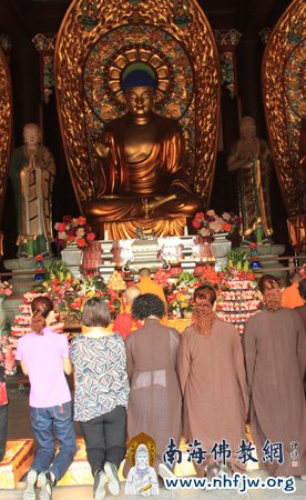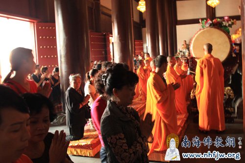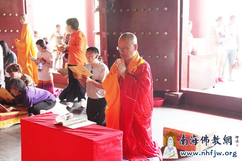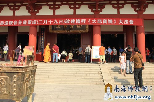 2013年3月30日,欣逢观音菩萨圣诞日,海南三亚南山寺隆重启建礼拜《大悲宝忏》法会。南山寺智法法师引领四方信众诵经祈福,祈愿国泰民安,世界和平。