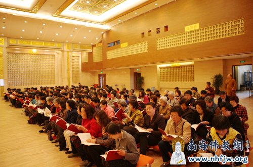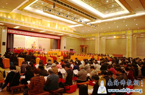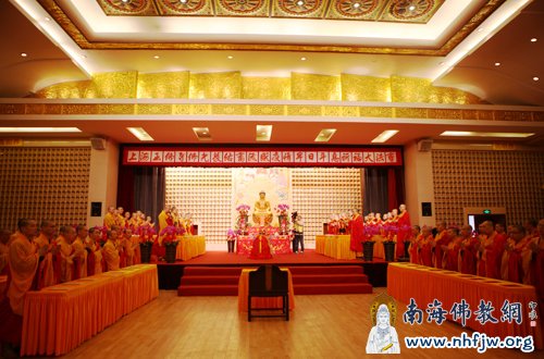 2013年4月17日(农历三月初八),上海玉佛禅寺在觉群楼多功能厅举行“佛光护佑禽流感疫情早日平息祈福大法会”。玉佛寺的全体法师、寺院护法居士及今天来寺参加放生活动的信众约300余人参加法会。