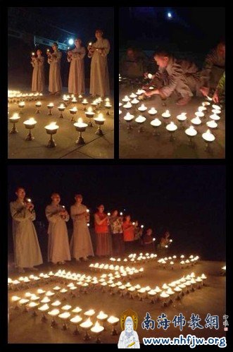 在佛教中,灯代表光明和智慧,意即提醒世人要追求智慧,以去除愚痴。以灯供佛,隐含着以灯破暗、象征以智能除惑的深义。在当晚的缅怀活动中,来自我国各地的多名大学生有缘与中华寺僧众及义工在现场一起供灯,中勇法师为学生们介绍了本焕长老的修行历程以及其燃灯孝母的故事。学生们非常感动,并与法师、义工一起诵经传灯,齐唱“感恩的心”回向社会和谐,人民安乐。