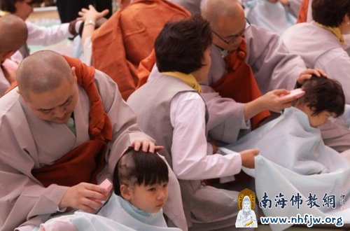 2013年5月3日,韩国首尔曹溪寺内,小男孩们在佛诞日接受剃度,体验为期3周的僧侣生活。“小和尚”们各种卖萌,让人忍俊不禁。