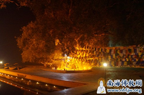 蓝毗尼花园虽然举世闻名,花团紧凑,游人不绝。但是自从恢复以来,香客游人都是白天前来谒拜,入夜以后,整个景区不再有任何声息。几十年来,晚夜的蓝毗尼花园法灯不燃,是全世界佛教徒的深深遗憾,人们盼望佛祖诞生地能够祖灯长明,照耀世间。2011年印顺大和尚荣膺尼泊尔中华寺方丈以后,为能够伺伴佛陀,亲近佛地而感到欣慰。他深知肩上的责任重大,中国佛教的形象始终在他的头脑里莹绕,为了展示中华佛教的宏大气魄,沐浴佛恩不忘祖德,印顺大和尚顺应人心,特地安排专人前来为蓝毗尼花园设计亮化工程,在国内有关单位支持下,经过一年多的努力奋战,蓝毗尼花园设计亮化工程最终完工,并于2013年元旦开始点燃。新建设的蓝毗尼花园亮化工程,用现代化的手段展现了蓝毗尼花园夜晚的良霄美景,高大的佛塔晃射出耀眼的光芒,几十公里之外皆能示现。佛陀纪念博物馆在彩色灯光照耀下,曜曜闪烁,向世人传递着佛陀的爱心。在太子悉达多出生的树下,五彩的灯光就是佛陀成道以后身上放出的永远不落的禅之之光,各种灯光聚焦映照在水池,房屋倒影,树叶裟罗,千灯竟放,圣火永住。蓝毗尼花园绽放的光彩,为佛祖诞生地增添了又一美景,随着蓝毗尼花园彩灯竟映,佛法灯灯相继,为世界各地的香客与游人带来了美的享受。中国佛教徒为世界佛教的发展,再次作出重要的贡献。